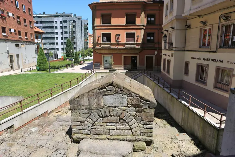 Fuente de Foncalada. Esta fuente, uno de los monumentos prerrománicos más importantes de Oviedo, es una pequeña construcción de sillares de piedra regulares, con cañón abovedado y arco de medio punto; en su frontispi ...