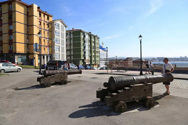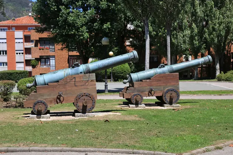 Cañones del parque del Muelle. PCañón 1: Esta pieza de artillera, como las tres restantes situadas inmediatas, son cañones de ordenanza realizados en España durante el siglo XVIII. Su estado de conservación en líneas gen ...